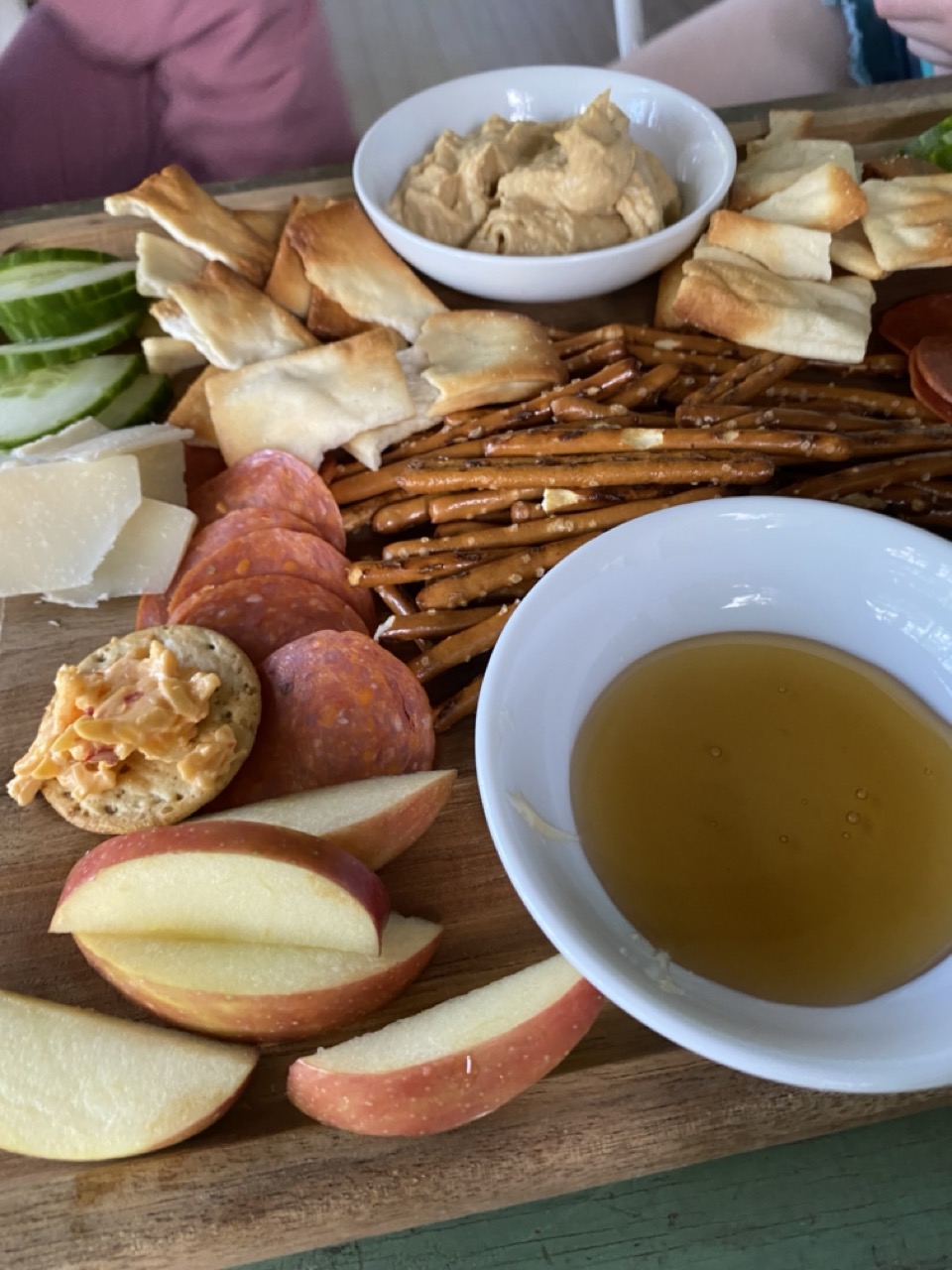 we started keeping ingredients on hand in order to create a charcuterie board to have the best of both worlds. our first few months of this method involved putting together boards on the porch for us parents, with some version of mac-n-cheese or pb-n-j for the kids to share alongside us.